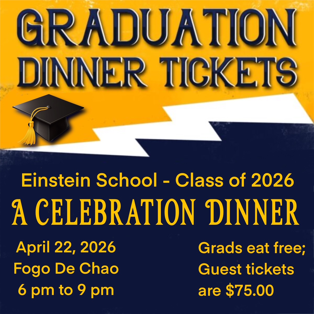 We are excited to invite the Einstein Class of 2026 to a special dinner in their honor! Join the Einstein staff at Fogo de Chão on Wednesday, April 22, 2026, from 6:00 to 9:00 PM for an evening of celebration and community. Due to the size of the graduating class, we have the entire restaurant reserved for this event.