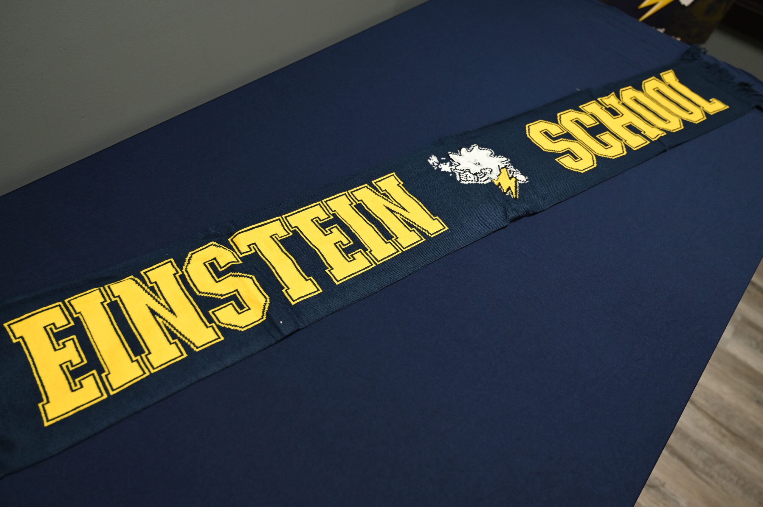 Wrap yourself in Einstein pride this season with our exclusive Einstein Scarf! Designed with the school’s signature colors and logo, it’s perfect for chilly mornings, sporting events, or showing your Charger spirit wherever you go. Warm, stylish, and unmistakably Einstein.